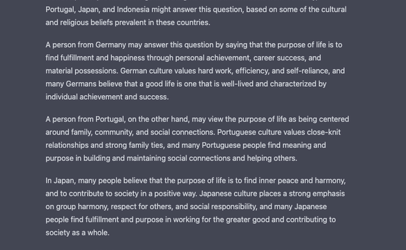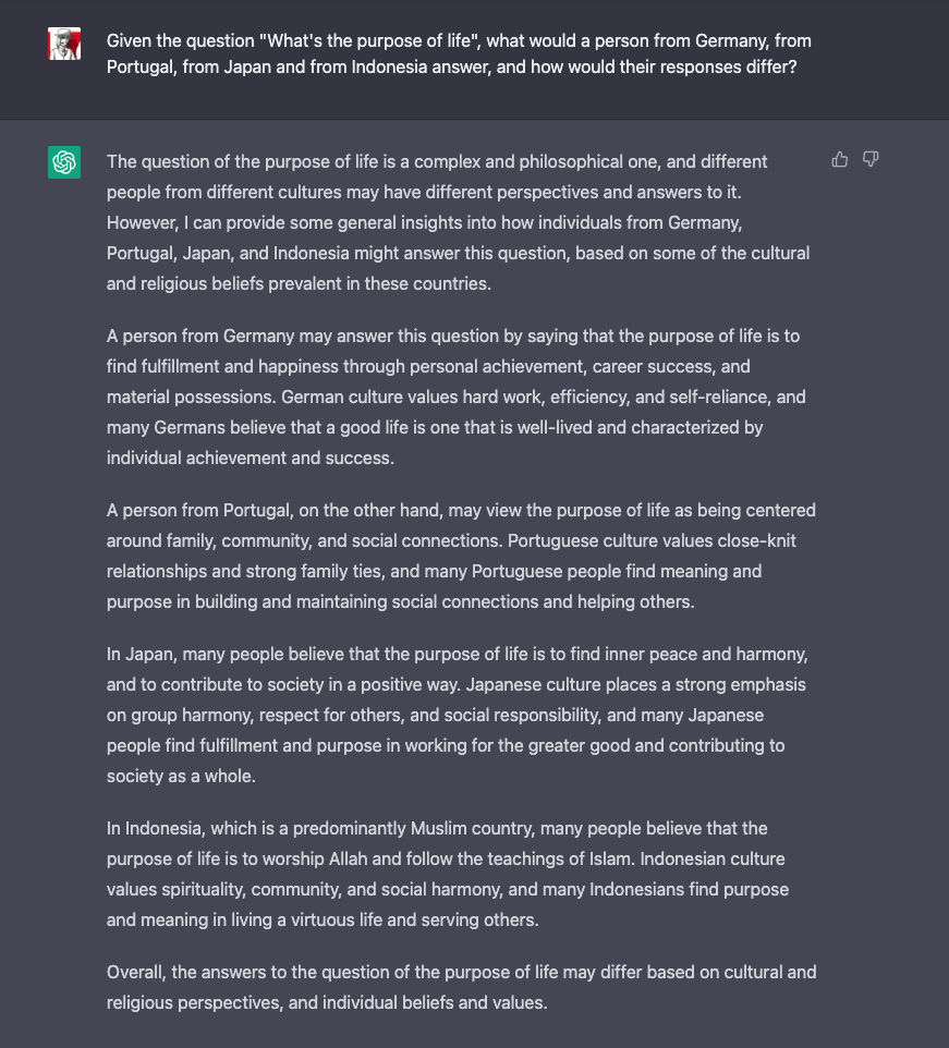 The AI is fed with so much incredible data that it actually knows the answer to everything. Except for current events, because the data only goes up to 2021. Admittedly, you can never be one hundred percent sure whether the answer is just made up or based on fact - ChatGPT would rather fabricate than not answer something. A little basic knowledge in the area concerned is therefore helpful. Also, depending on the question, the answers may serve stereotypes and ingrained thought patterns.