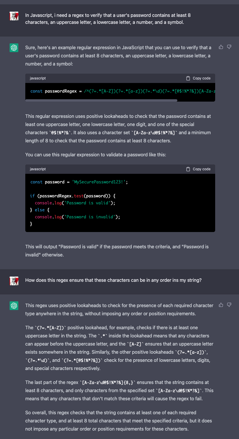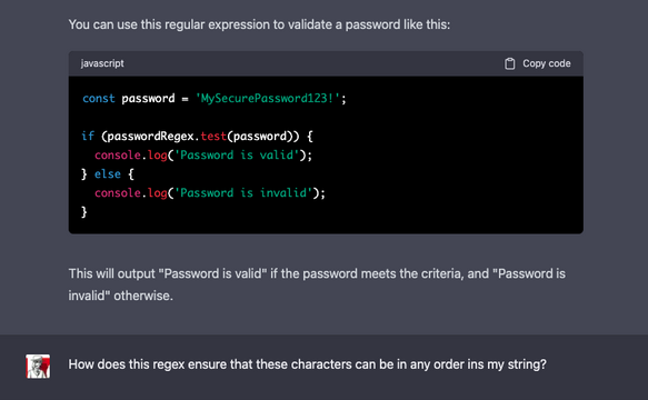For me as a UX designer and programmer, ChatGPT is especially interesting because of its knowledge of diverse programming languages. I can describe to the AI in words what a particular function should do, and it then implements that in any programming language. Handy, especially for things I simply can't remember and before ChatGPT had to look up in every project, like RegEx codes or redirects in htaccess. In the meantime it is enough to formulate the desired result and check the finished source code again.