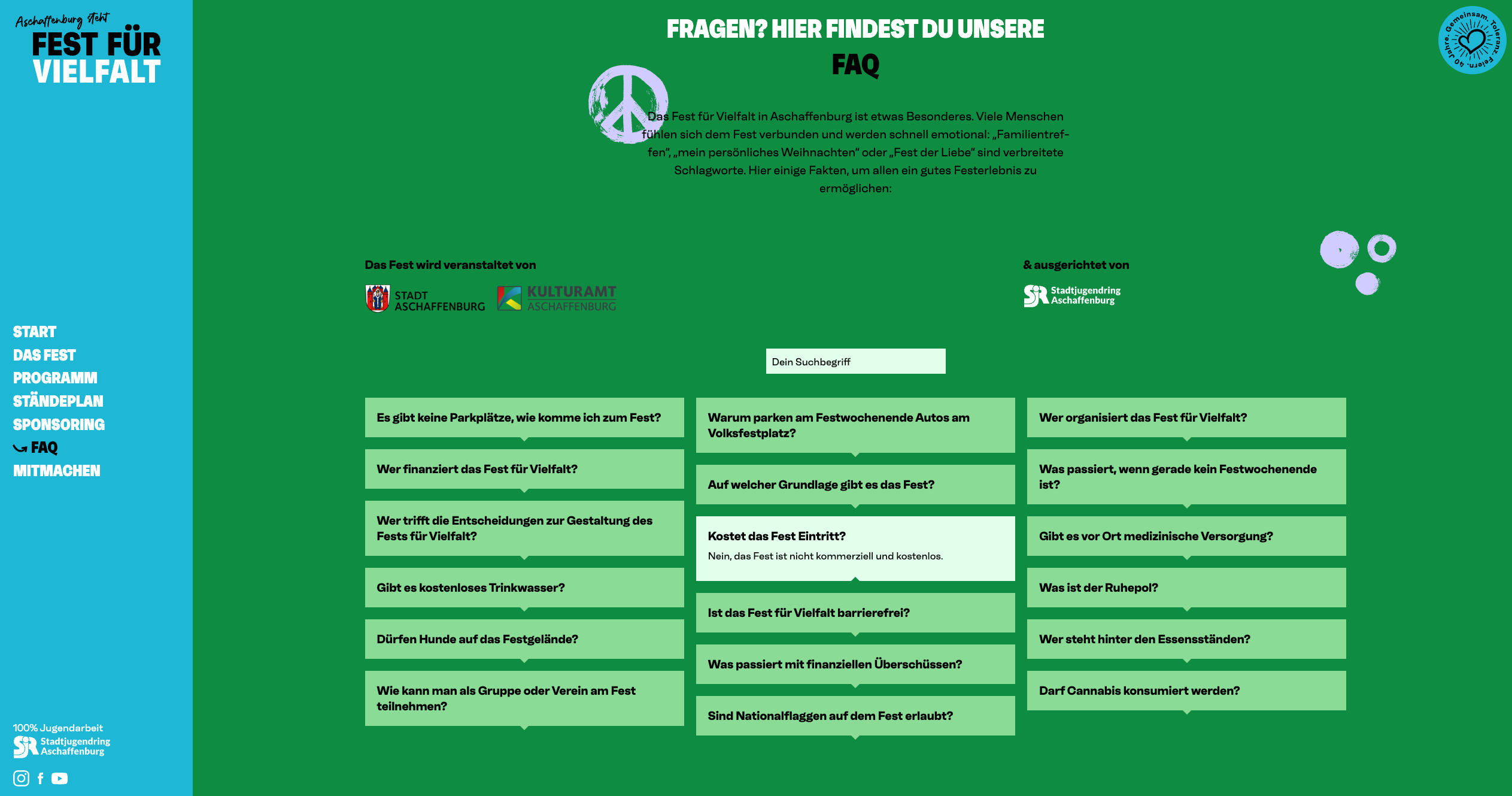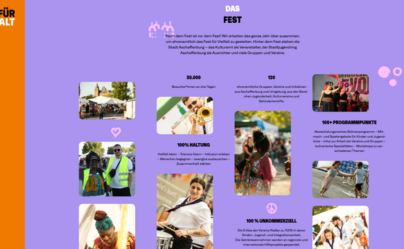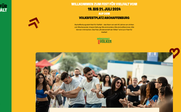 We have provided our expertise and resources pro bono to design and implement the new website for the “Fest für Vielfalt Aschaffenburg.”