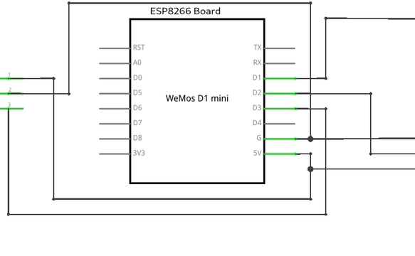 An ESP 8622 developer board and a few inexpensive electronic components are used.