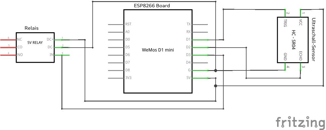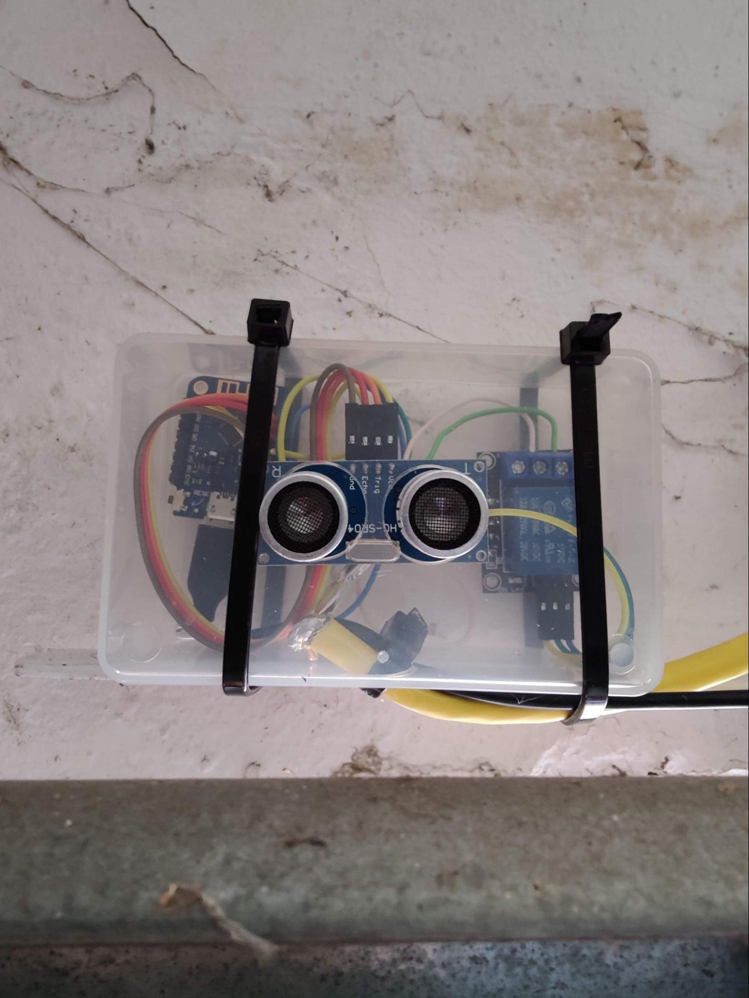 Depending on the situation, the code may still need to be adjusted: Our garage door moves under the ceiling when opening and covers the ultrasonic sensor, so if it measures a distance of less than 20 cm, the door is open, anything above means it is closed.